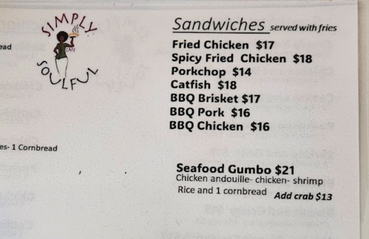 Guests like Genevieve Condron have remarked on the quick service during busy hours, with meals arriving fresh and hot—perfect for a satisfying lunch break or a cozy dinner with friends. With a wide variety of options available, including fried chicken that’s frequently labeled as “Grade A” and a seafood menu that guarantees freshness, there’s something for everyone at Simply Soulful.